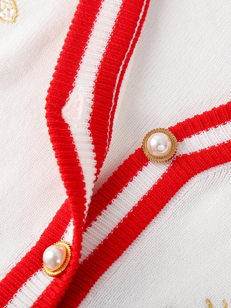 High Quality Fashion Designer Bee Embroidery Cardigan Long Sleeve Single Breasted Contrast Color Button Knitted Sweaters C-068